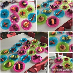 The children designed their own healthy minibeast and were supported by staff to prepare their fruit and vegetables safely.