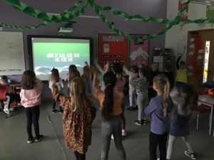 The children had a fantastic time at the Welfare hall dancing and singing along to Welsh songs.
