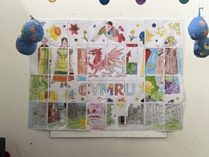 The children have worn red, green and white to celebrate being Welsh and enjoyed listening to welsh songs in class. They have practiced the names of colours in Welsh and also incorporated this into our Cymraeg ar dy dafod goal of asking ‘ga i bensil glas os gwelwch yn dda?’