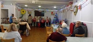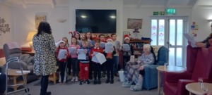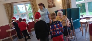 The school choir visited the residents in the local care homes to sing Christmas songs.