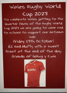 Lets support our boys by wearing Red –  Dewch Ymlaen Cymru!!! – Friday 13th October