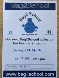 The collection will be at school on the morning of Tuesday 28th March but please bring your bags in to reception anytime after February half term.