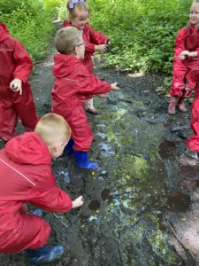 We promote learning through outdoor activities. The children follow the Forest School Programme in our woodland area. Two members of staff are qualified Forest School Practitioners. An essential piece of equipment for our school is a pair of brightly coloured Wellingtons and a waterproof coat!